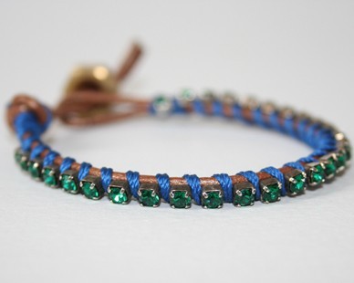 Stackable Bracelet - Green Rhinestone and Copper Leather Wrap